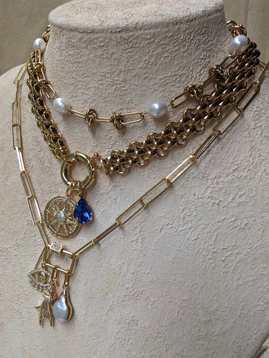 CARA Multi charm gold chain necklace