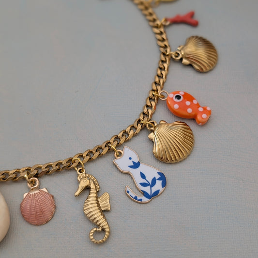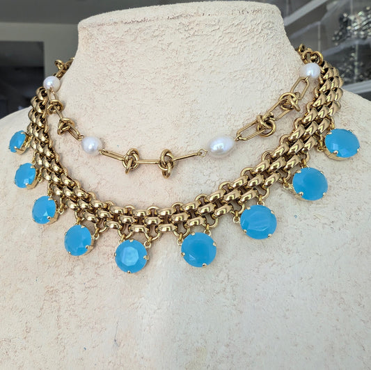 Chunky gold chain necklace with turquoise charms