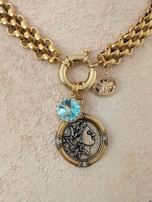 Chunky gold coin medallion choker