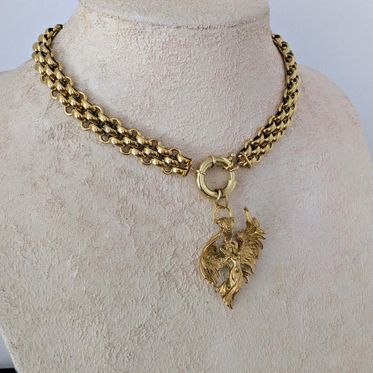 Chunky gold Chain and angel pendant choker