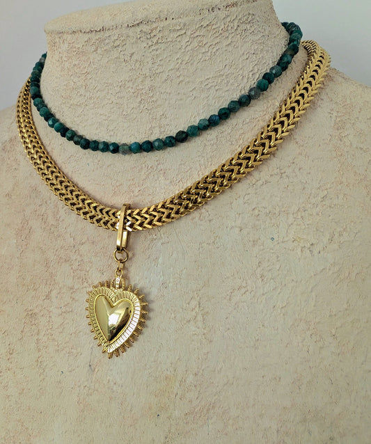 Chunky gold chain heart pendant necklace set, layering necklace, bold boho statement jewelry, large sacred heart choker, gift for girlfriend