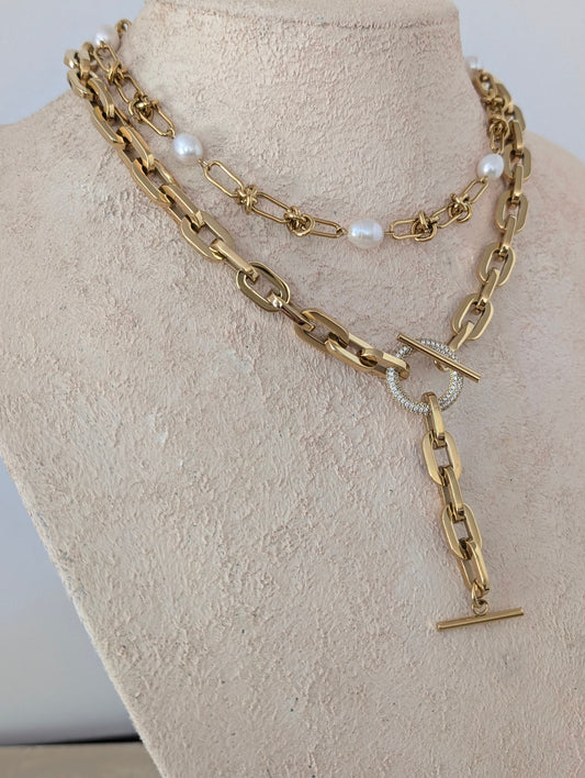 Chunky gold chain lariat necklace