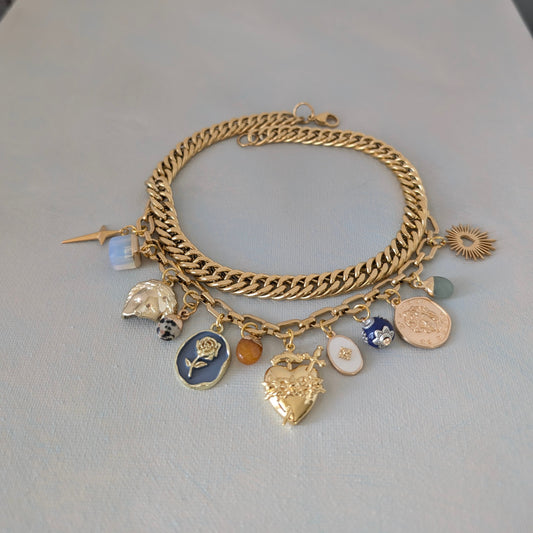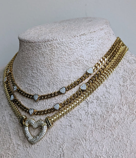 Layered gold chain necklace with heart pendant, chunky diamond heart necklace set, boho statement necklace, minimalistic charm jewelry