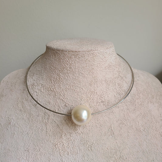 Large pearl and gold wire choker, single pearl necklace, trending jewelry, pearl choker, statement necklace, pearl pendant metal choker
