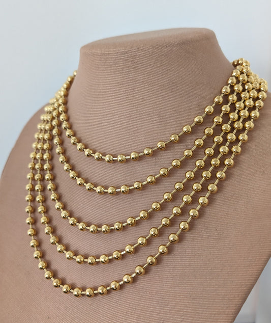 Layered chunky chain necklace, gold tone multi layer necklace, boho textured necklace, ball chain statement necklace, non tarnish jewelry